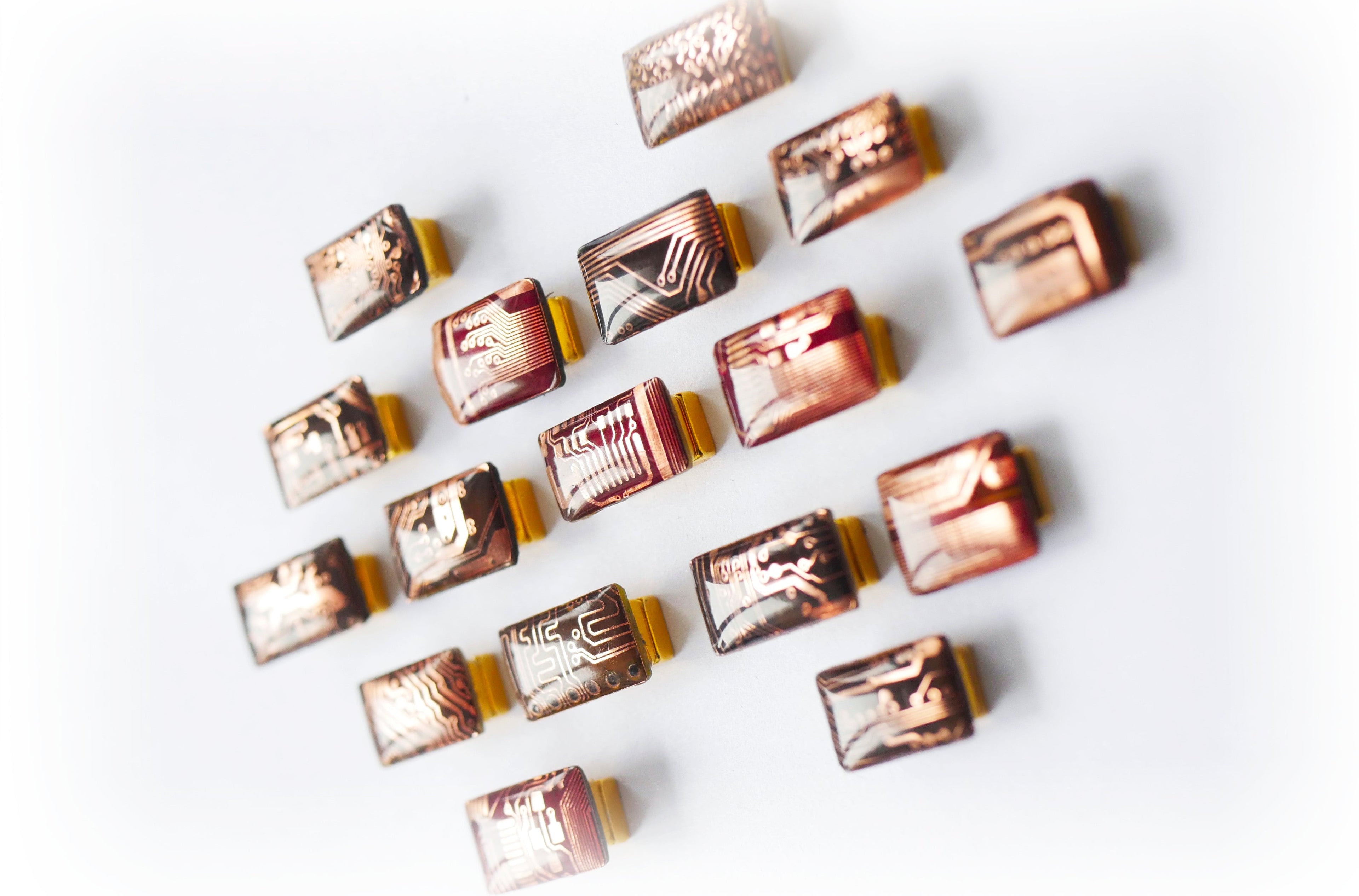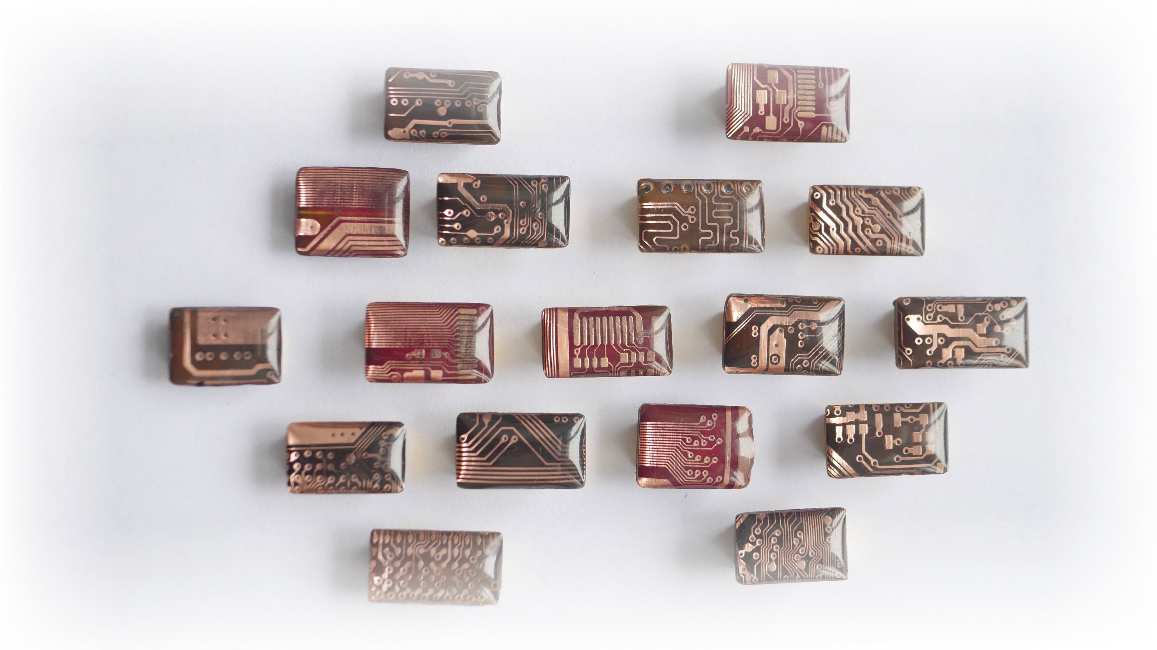 Authentic Design: Each piece is handcrafted from electronic circuits, UV protective resin and gold-plated magnets.